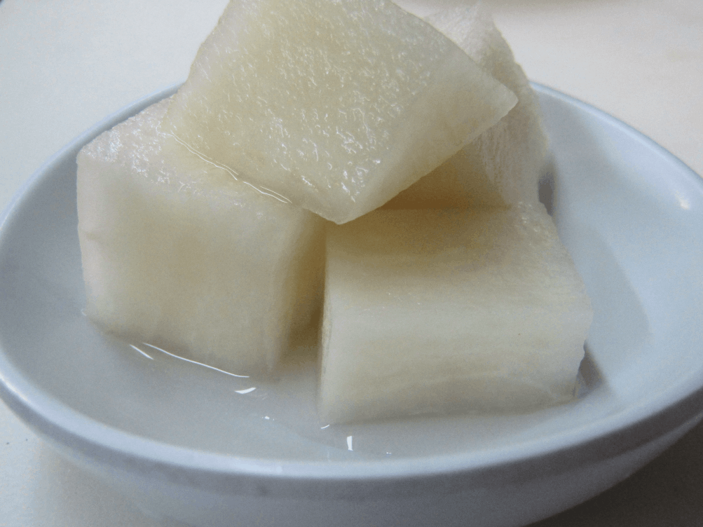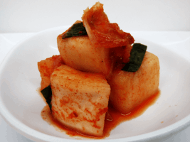 Made with fresh Korean radish, salt, water, vinegar, sugar, and garlic.
