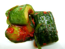 Made with fresh cucumbers, green onion, red chili powder, garlic, salt, fish sauce, and Asian chives.