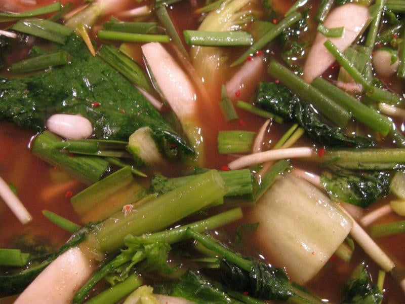 Yeolmu mul kimchi, also known as young summer radish water kimchi, is a popular variation of this dish that is made with young summer radishes. The radishes are cut into thin slices and mixed with a brine made of fish sauce, water, garlic, ginger, and red pepper flakes.