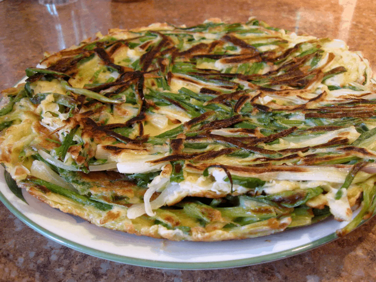 Other Varieties: Besides scallion jeon, there are many other types of jeon, such as kimchi jeon (made with kimchi), buchujeon (with garlic chives), and nokdujeon (mung bean pancakes). These pancakes can be both savory and sweet, and they are often served at Korean dinner parties or as street food.
