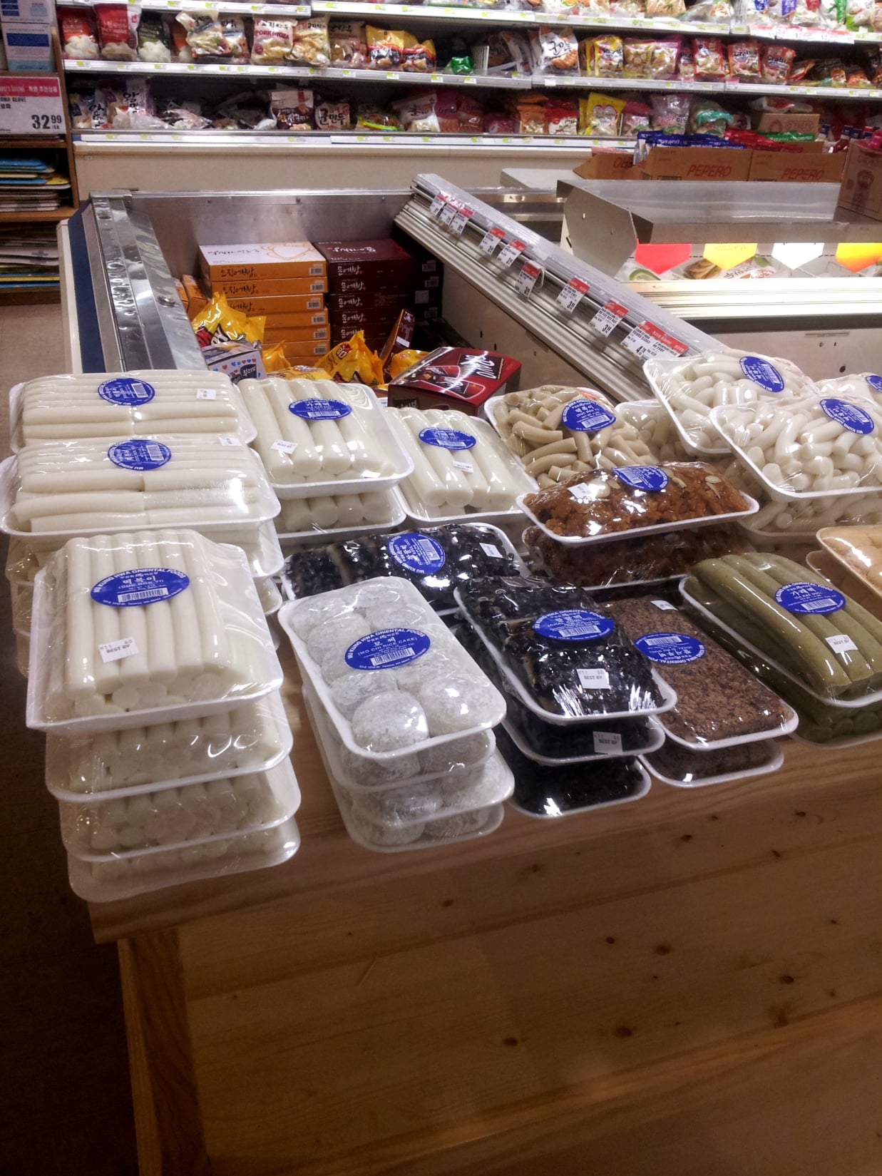 Cylindrical rice cake made from medium or short grain rice. Can be grilled and served with honey as a dip, but more often sliced diagonally into ovals and cooked in a beef broth to make a traditional soup for New Year's Day.
