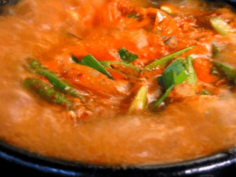 Definition: A classic dish in Korean cuisine, soondubu jjigae consists of uncurdled tofu (known as soondubu), along with an array of vegetables and usually seafood or meat, all cooked together in a flavorful and spicy broth.