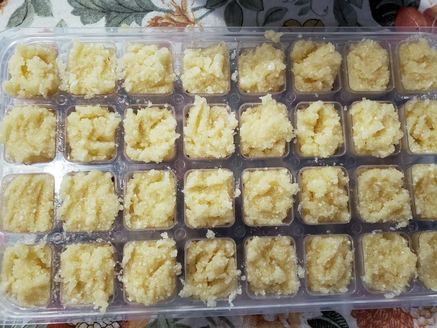 Garlic can be run through a blender or food processor and frozen for future use. 1 clove equals approximately 1 teaspoon of garlic paste.